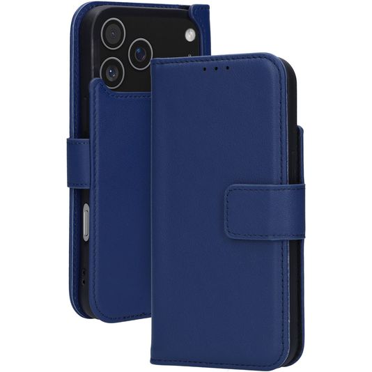 Mobiparts Wallet iPhone 17 Pro Max MagSafe Hülle Echtes Leder Klapphülle Geldbörse - Blau