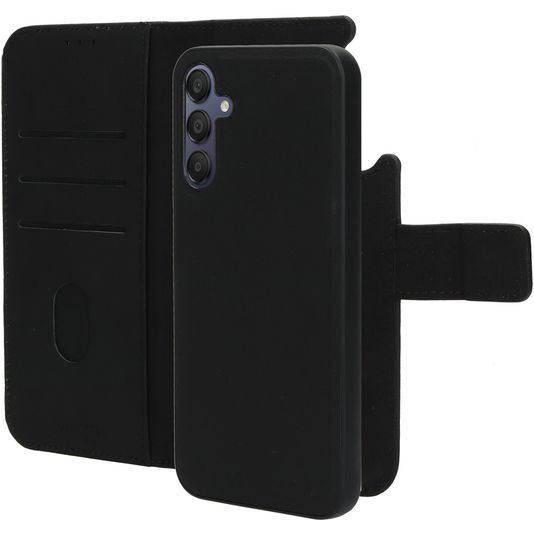 Mobiparts Samsung Galaxy A15 Hülle Echtes Leder Abnehmbare 2in1 Klapphülle Geldbörse - Schwarz