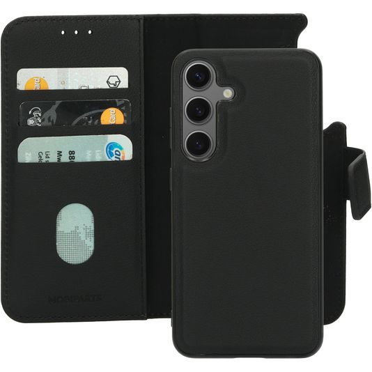 Mobiparts Samsung Galaxy S24 MagSafe Hülle Echtes Leder Abnehmbare 2in1 Klapphülle Geldbörse - Schwarz