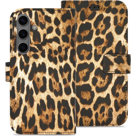 Willst du eine Samsung Galaxy S24 Hülle mit Rundum-Schutz und einem stylischen und praktischen Design? Dann ist diese My Style Flex Wallet Klapphülle für Samsung Galaxy S24 die perfekte Wahl. Die Klapphülle ist aus hochwertigem Kunstleder gefertigt und kommt in der Farbe wild leopard. Mit einer Klapphülle ist dein Samsung Galaxy S24 rundum gut geschützt, auch der empfindliche Bildschirm. Die Klappe öffnet sich seitlich wie ein Buch und schließt sich fest mit einem Magnetverschluss. Es gibt Platz für 3 Karten, damit du deine Bankkarte oder deinen Ausweis immer zur Hand hast.