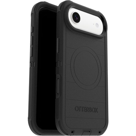 Nutze die Vorteile von MagSafe mit deinem Apple iPhone Air mit der Otterbox Defender Apple iPhone Air Backcover Hülle mit MagSafe Magnet. Die MagSafe Hülle besteht aus stabilem Kunststoff und ist in der Farbe schwarz erhältlich. Mit dieser Apple iPhone Air MagSafe Hülle kannst du beliebiges MagSafe-Zubehör wie ein Ladegerät oder eine Halterung befestigen.