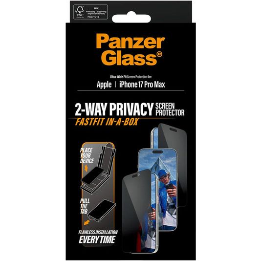 PanzerGlass FastFit iPhone 17 Pro Max Gehärtetes Glas Displayschutz Privacy - Hüllenfreundlich - Schwarz