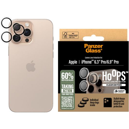 PanzerGlass Hoops iPhone 16 Pro Gehärtetes Glas Kameralinsen Schutz - Hüllenfreundlich