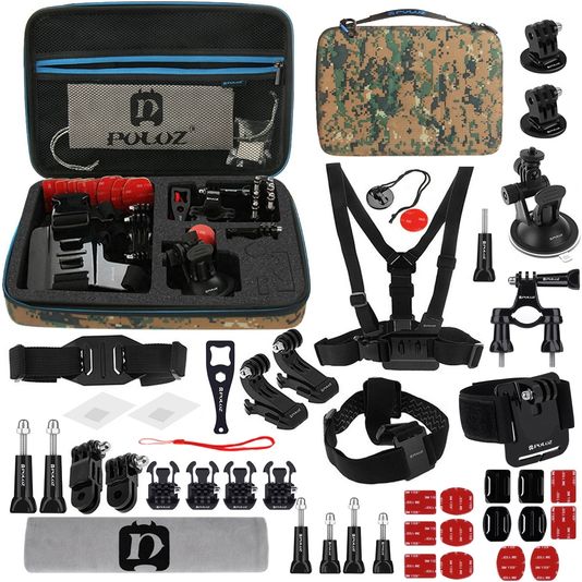 Puluz GoPro Mount Zubehör Starter Pack 45 Teile + Tasche Army