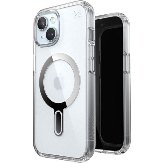 Nutze die Vorteile von MagSafe mit deinem Apple iPhone 15 mit der Speck Presidio Clear Apple iPhone 15 Backcover Hülle mit MagSafe Magnet. Die MagSafe Hülle besteht aus stabilem Kunststoff und ist in der Farbe clicklock erhältlich. Mit dieser Apple iPhone 15 MagSafe Hülle kannst du beliebiges MagSafe-Zubehör wie ein Ladegerät oder eine Halterung befestigen.