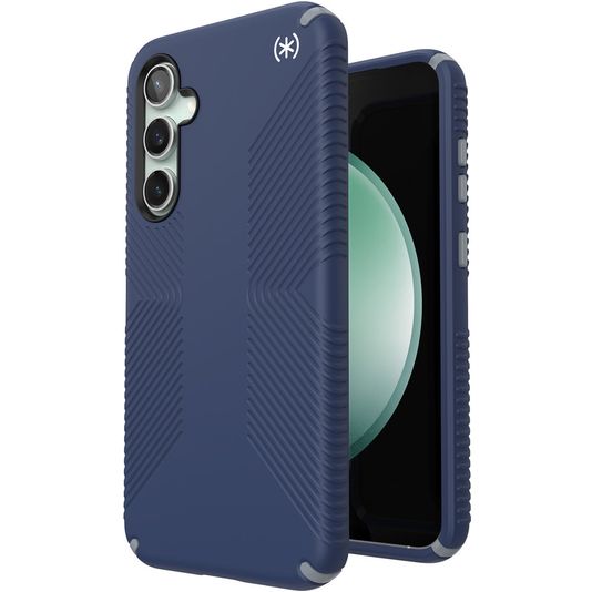 Schütze dein Samsung Galaxy S23 FE vor Schäden mit dem Speck Presidio2 Grip Backcover aus stabilem Kunststoff. Die Hülle kommt in der Farbe blau und deckt die Rückseite und die Seite deines Handys ab. Die Vorderseite bleibt mit diesem Backcover frei, sodass dein Bildschirm immer direkt zugänglich ist.
