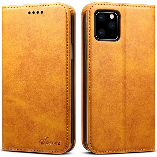 Suteni Art iPhone 11 Hülle Klapphülle Geldbörse - Cognac
