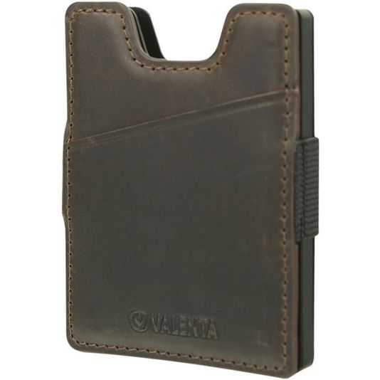 Valenta Card Case Alu + Money Strap Echtleder Kartenetui - 8 Karten - Braun