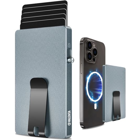 Valenta Cardprotector Clip Aluminium Kartenetui - 7 Karten - MagSafe Kompatibel - Blau