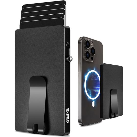 Valenta Cardprotector Clip Aluminium Kartenetui - 7 Karten - MagSafe Kompatibel - Schwarz