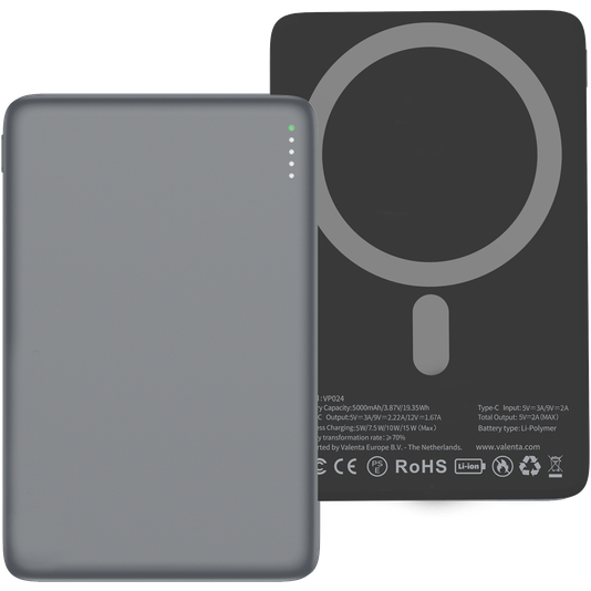 Valenta Ultra Slim Single USB-C Powerbank 5.000 mAh 15W - MagSafe Kompatibel - Grau
