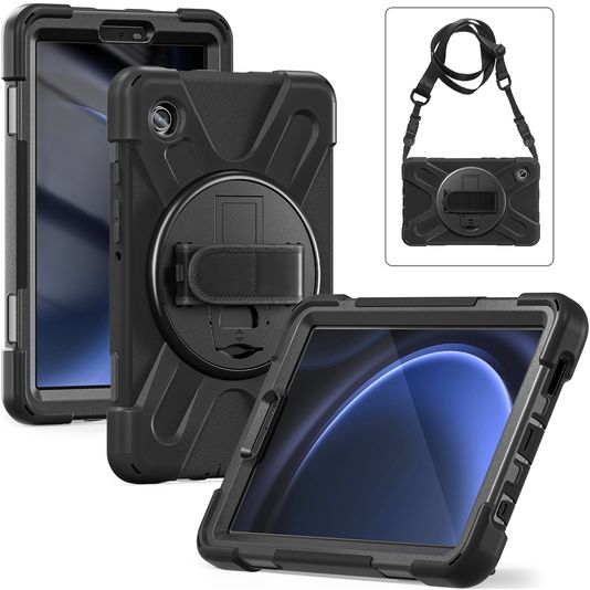 Xccess Survivor All-round Samsung Galaxy Tab A9 (2023) Hülle Kunststoff,Silikon Backcover + Schulterträger + Ständer - Schwarz